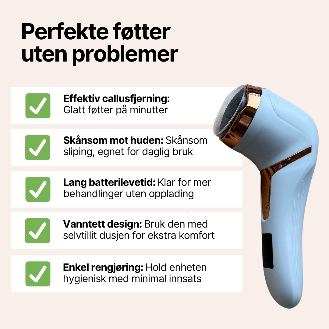 Fjerner død hud og callus for silkeagtigt bløde fødder uden salonbesøg.