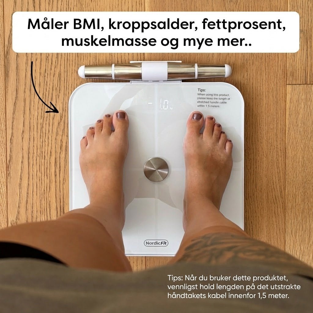 Du får innsikt i bl.a. kroppsfettproset, muskelmasse, BMI, væskebalanse og metabolsk alder.