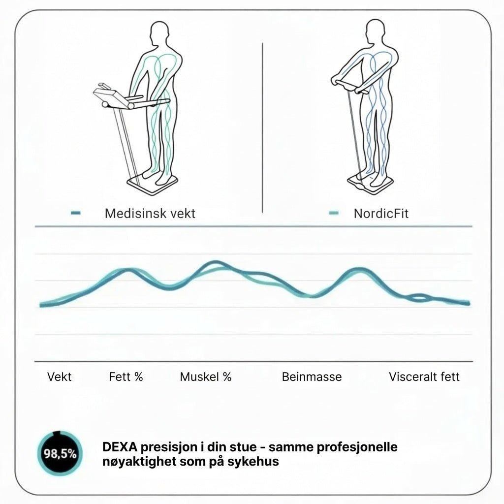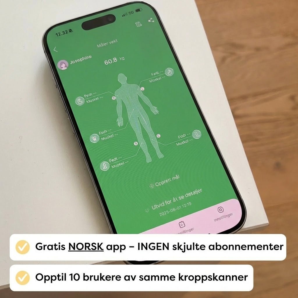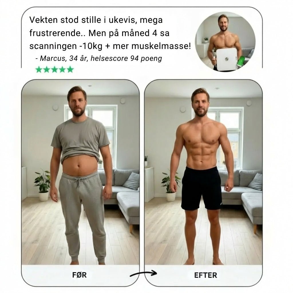 Ett tall forteller ingenting om den virkelige fremgangen din. Se nøyaktig hvor mye fett du har mistet, hvor mye muskelmasse du har bygget – og om kroppsalderen din faktisk forbedres. +50 helsmarkører