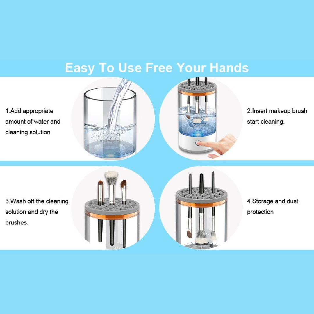 Automatisk rotasjon fjerner makeuprester raskt og effektivt uten håndvask.