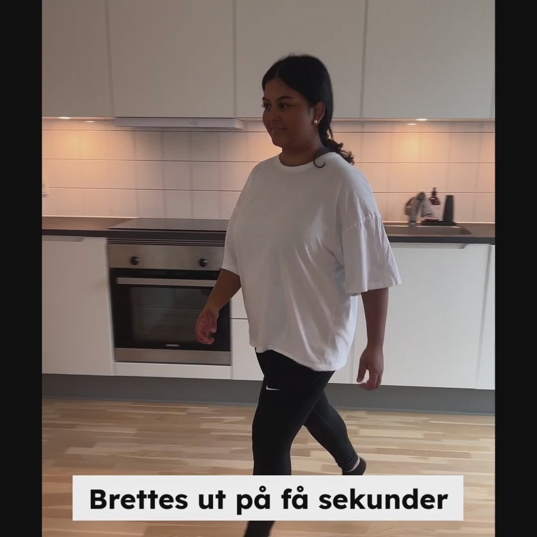 Mange oppbevarer den i et skap, bak en dør eller i hjørnet av stuen. Den veier lite, så den er enkel å flytte rundt. Perfekt for mindre leiligheter eller hvis du vil holde stuen ryddig.