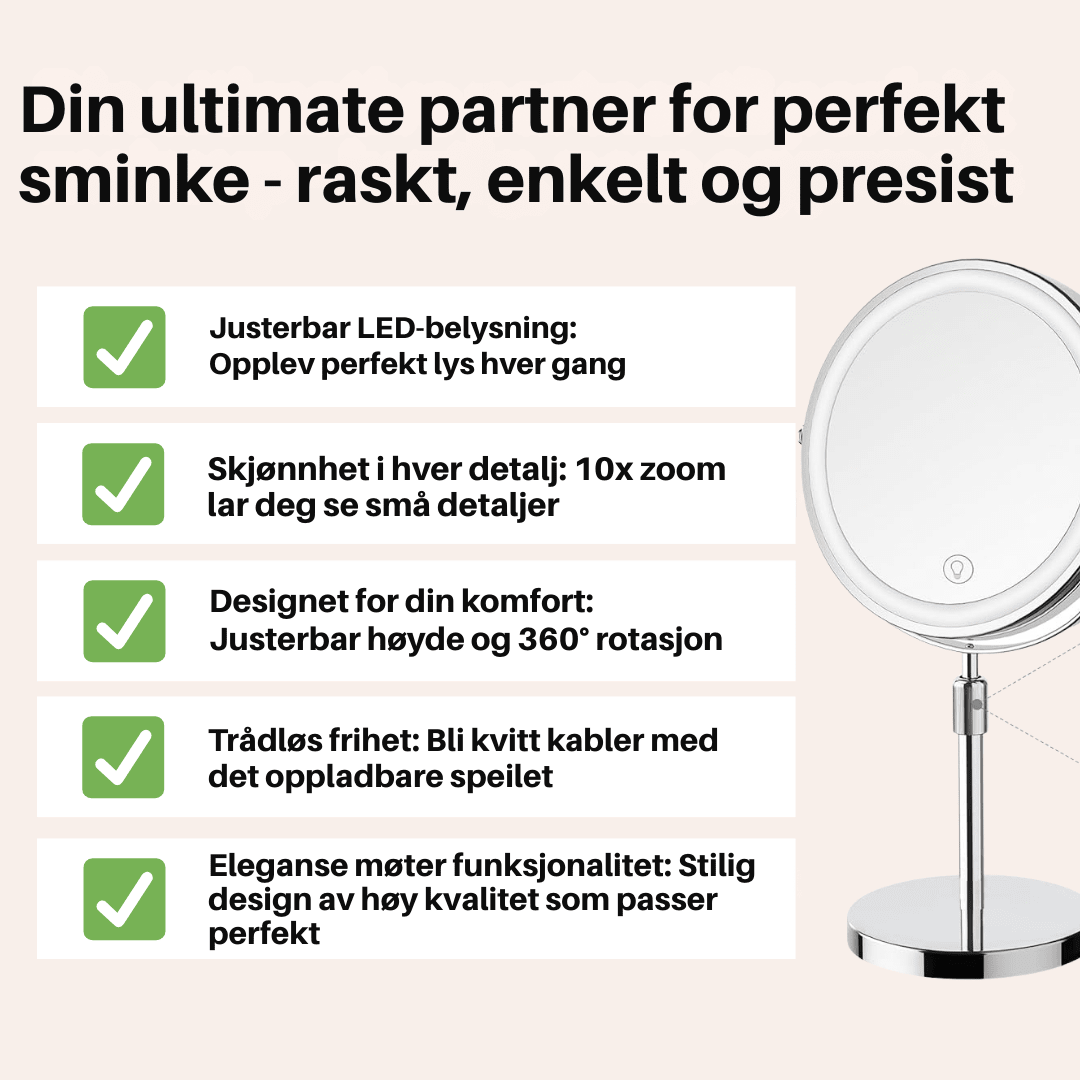 LumiGlow Pro – Det ultimate LED-sminkespeilet med 10x forstørrelse og justerbar belysning