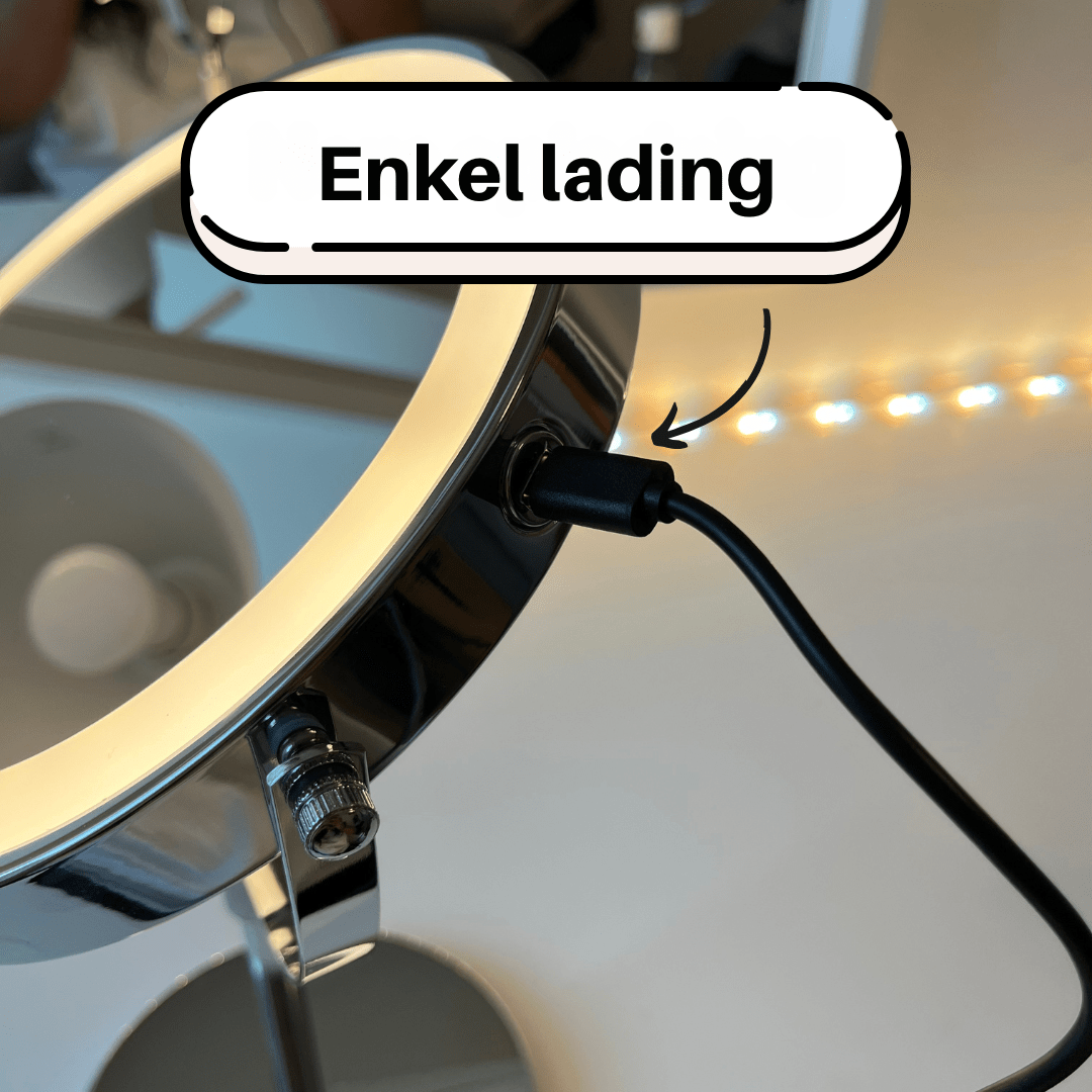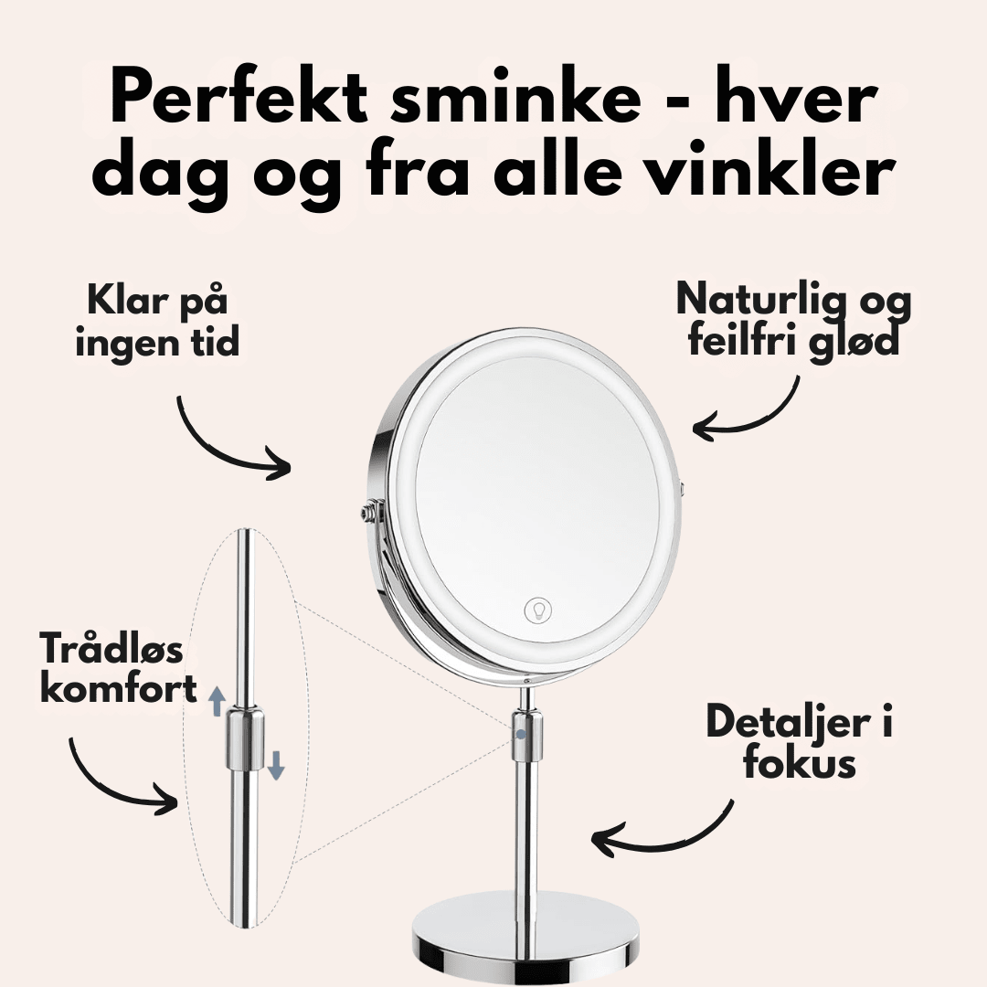 Det moderne og stilrene designet passer perfekt på badet, soverommet eller sminkebordet. Den robuste metallbasen gir stabilitet, mens det elegante utseendet gjør speilet til en stilig interiørdetalj i hjemmet ditt.