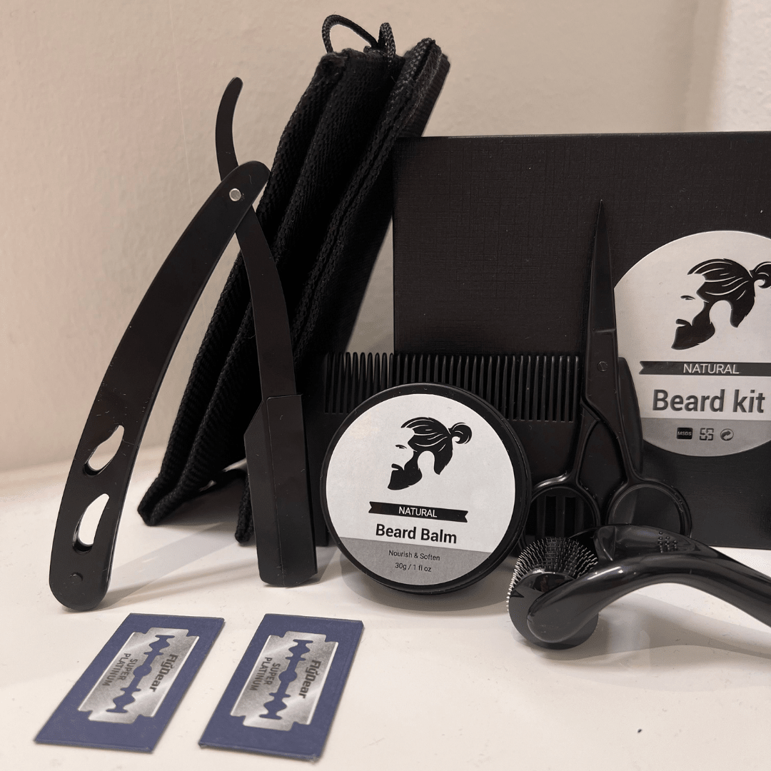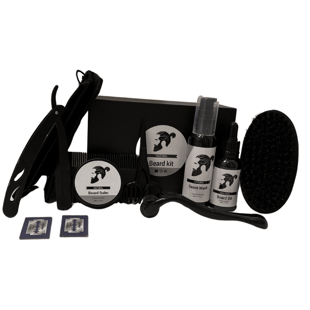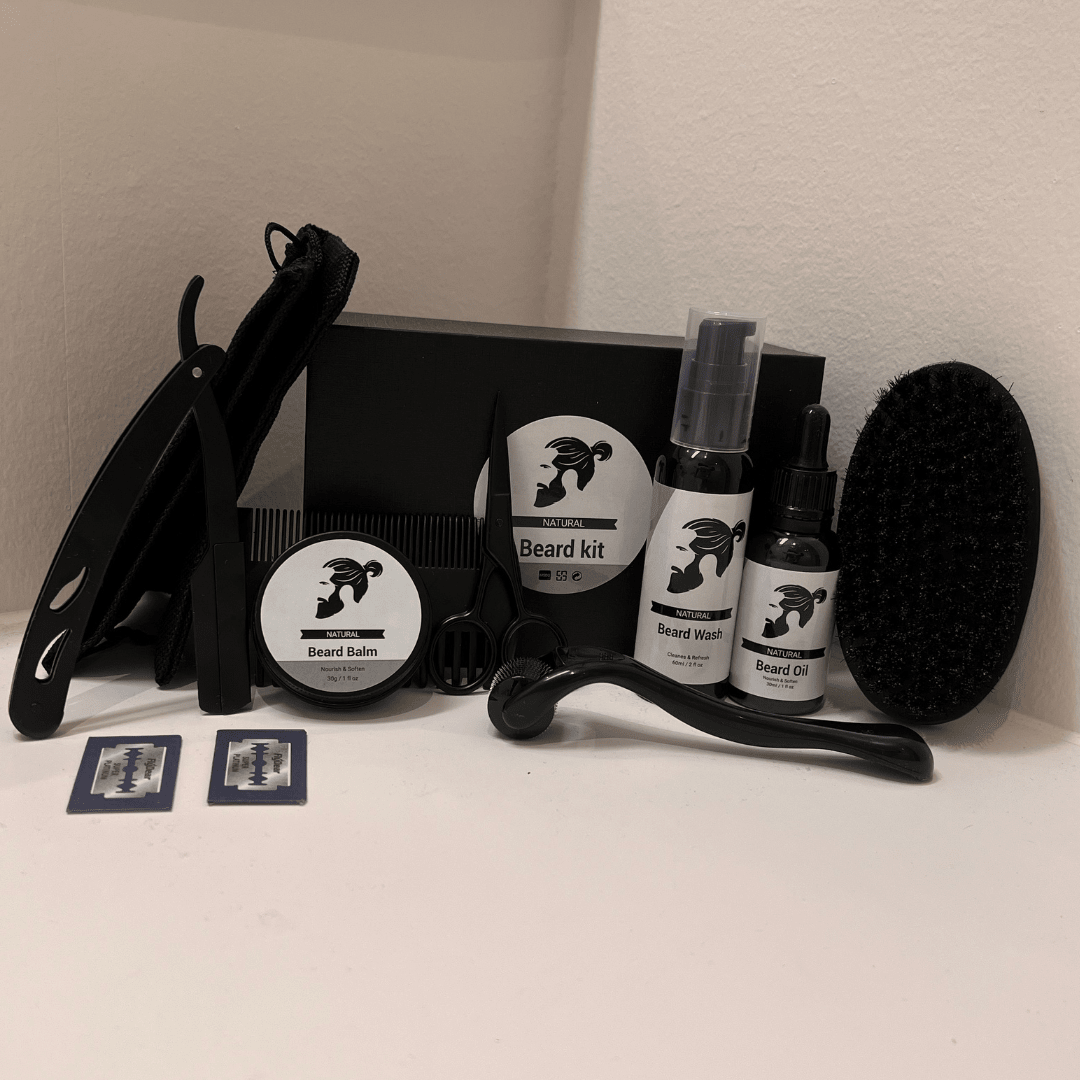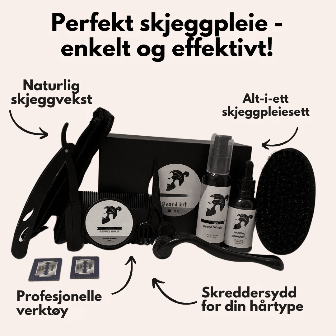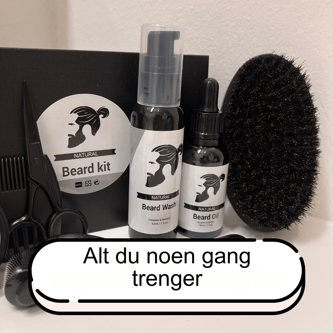 Dette er mer enn bare skjeggpleie – det er en komplett løsning. Settet inneholder alt fra skjeggkam, saks, børste og barberkniv til skjeggbalsam og skjeggsjampo. Det gir deg alt du trenger for å trimme, forme og pleie skjegget ditt, slik at det alltid ser rent, mykt og velstelt ut.