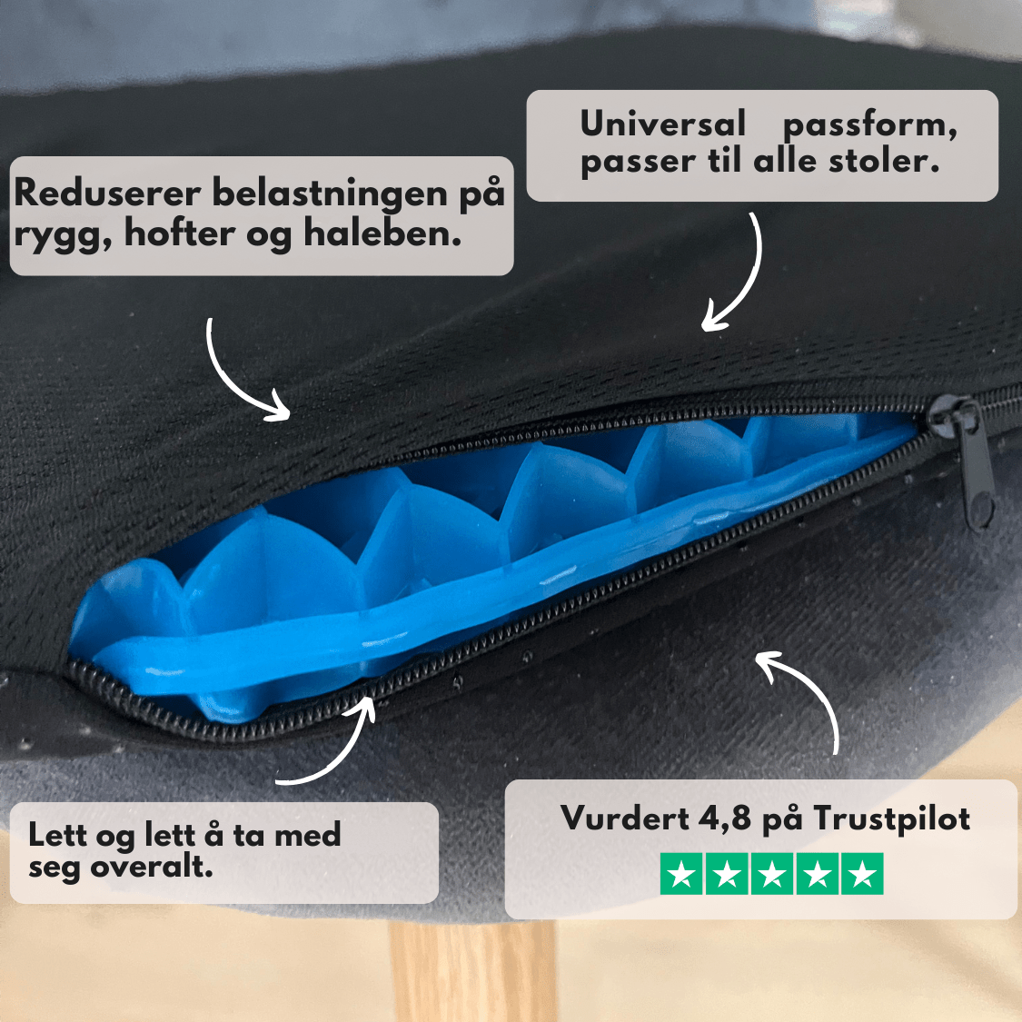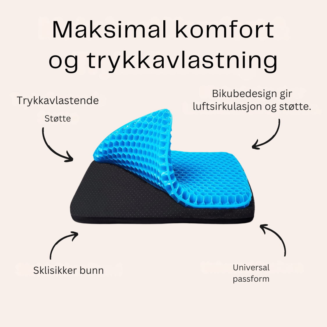 Sittepute av støtdempende gel med bikubestruktur – optimal vektfordeling og avlastning av trykk på haleben og ryggrad for en komfortabel sitteopplevelse