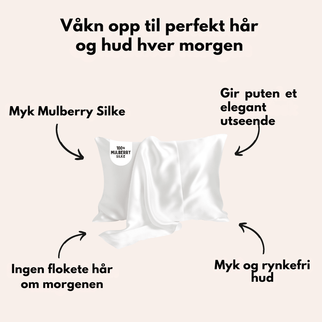 Silke er elegant, luksuriøst og har en positiv effekt på både hud og hår. Forskjellen mellom et vanlig bomullsputetrekk og et silkeputetrekk er umulig å overse. Med vårt silkeputetrekk får du en luksuriøs soveopplevelse og kan nyte alle fordelene et ekte silketrekk har å tilby.