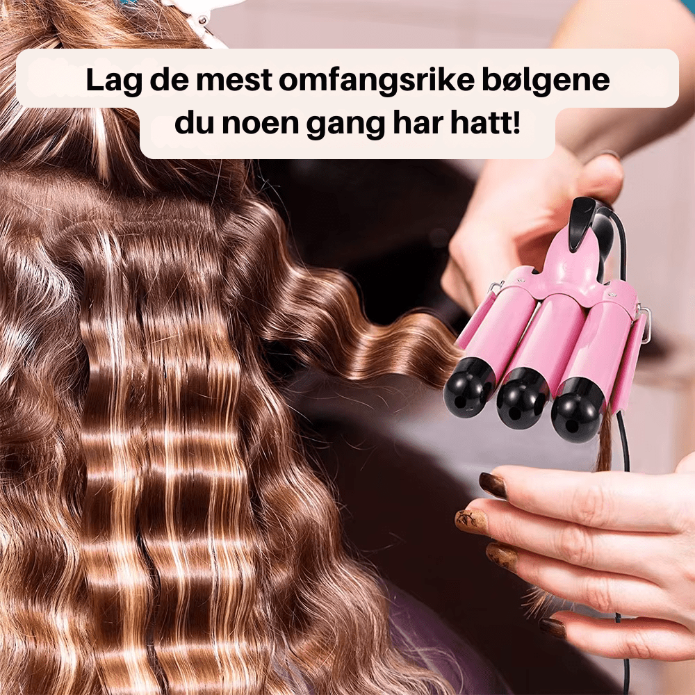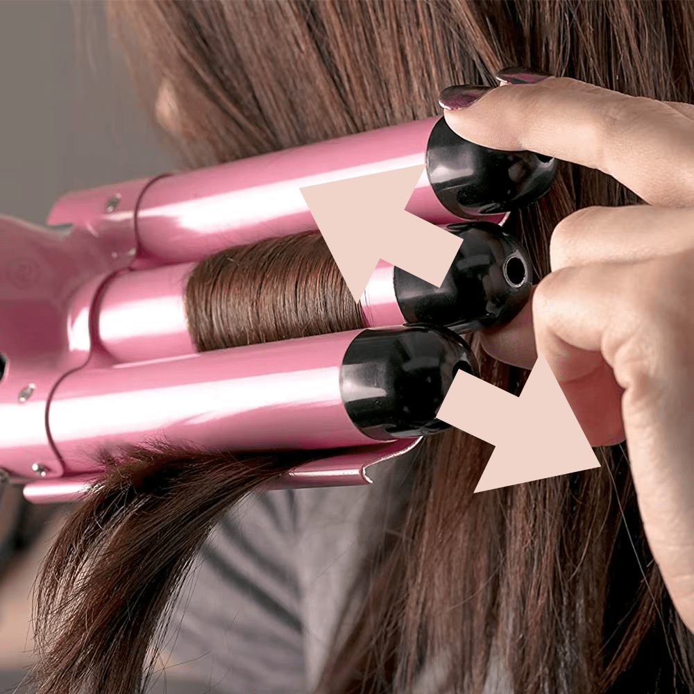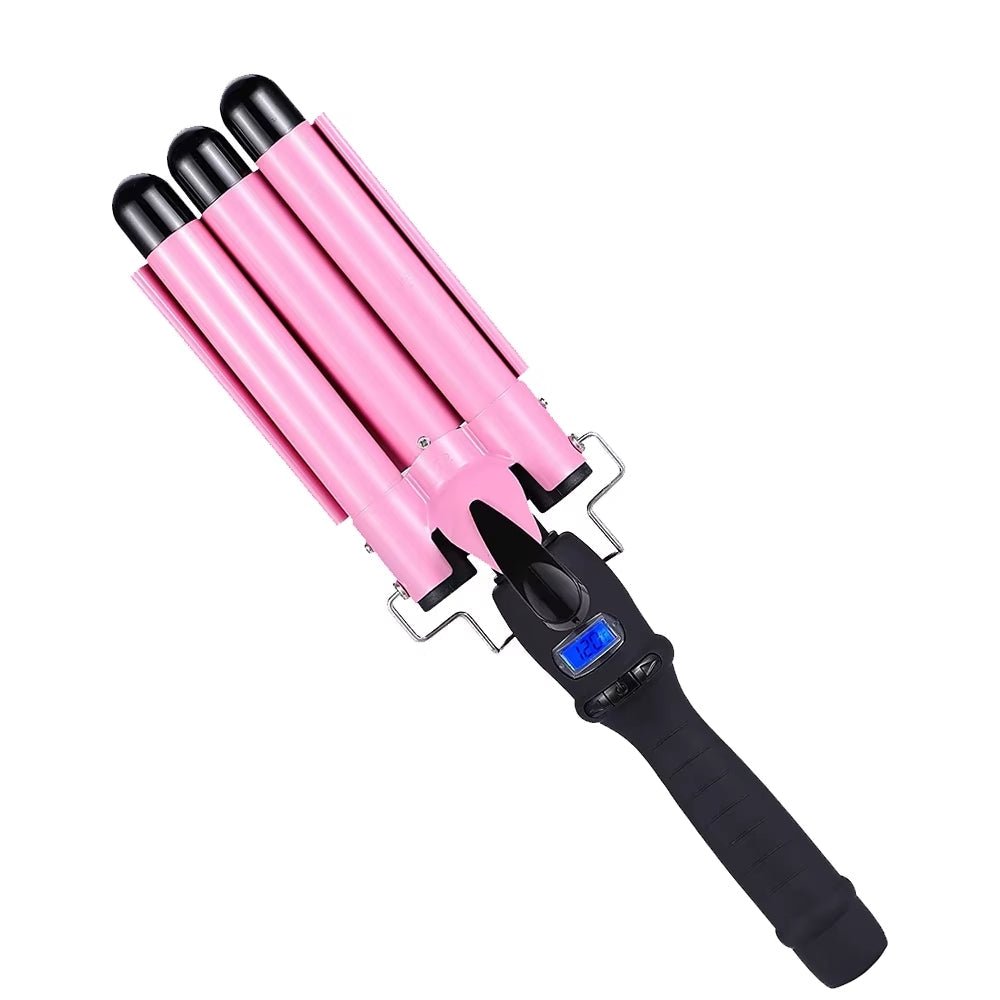 3-tønns krølltang – Justerbar temperatur, 25 mm keramisk triple barrel-bølgetang for strandbølger, dobbelt spenning, rask oppvarming