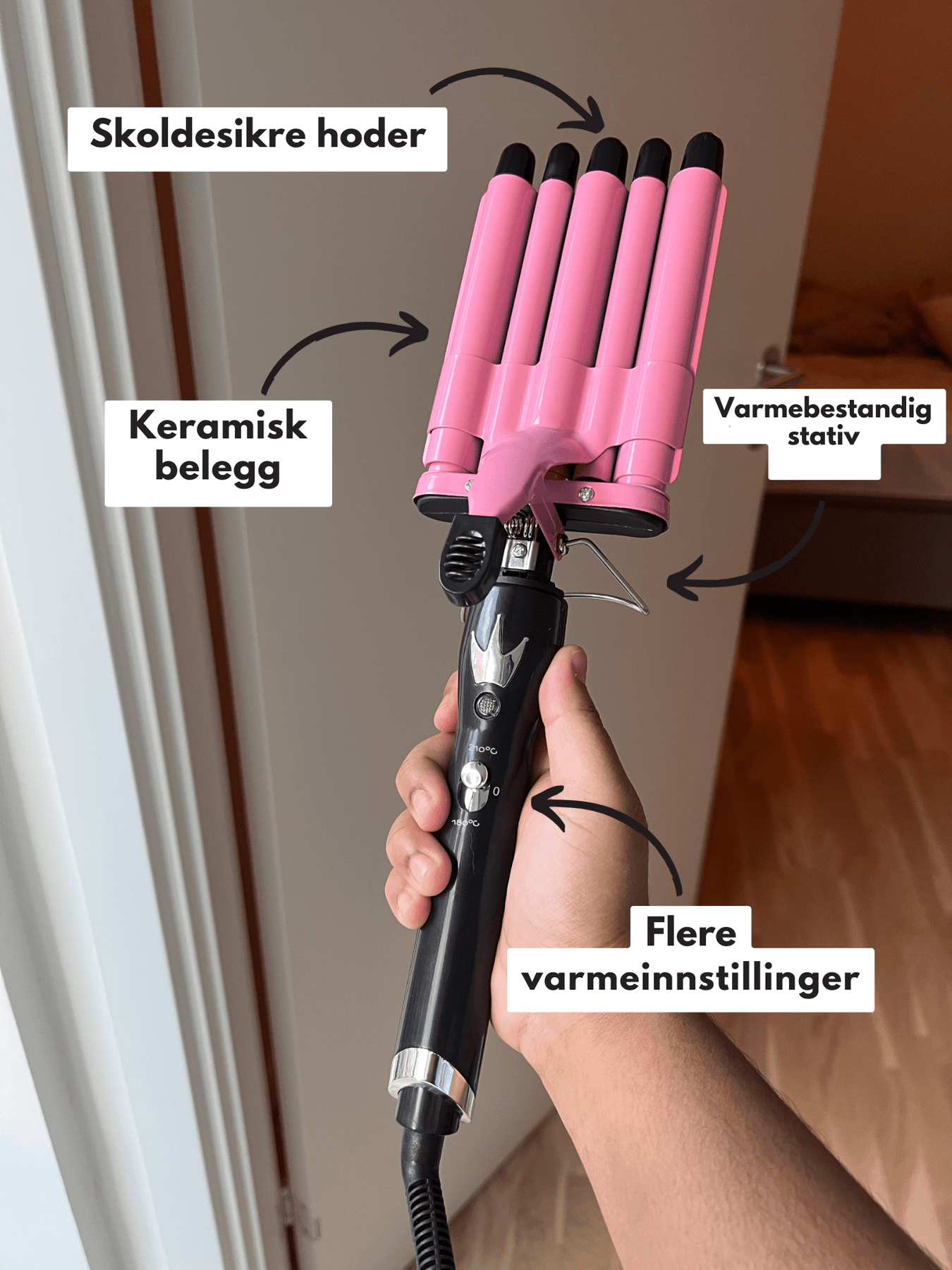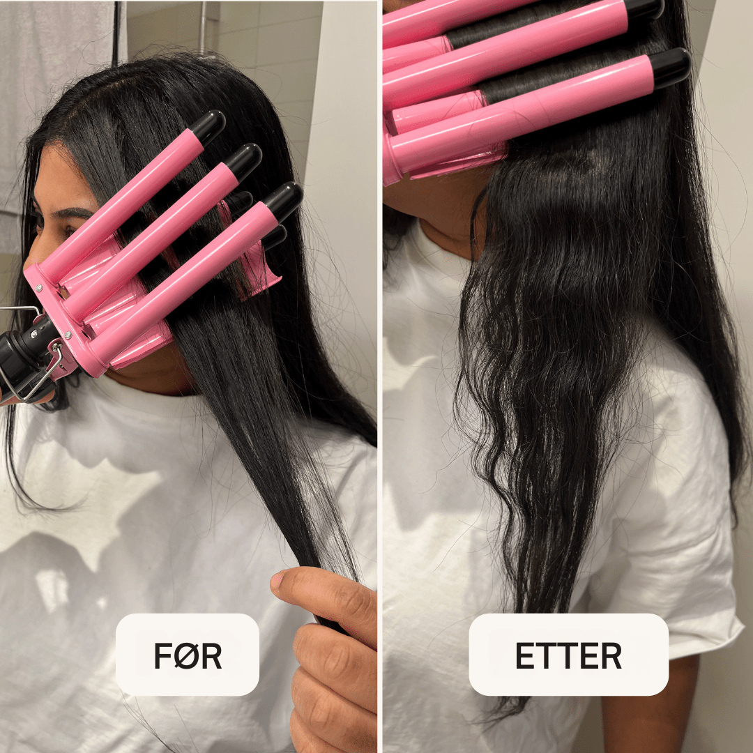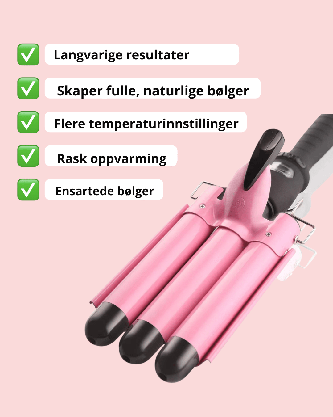 3-tønns krølltang – Justerbar temperatur, 25 mm keramisk triple barrel-bølgetang for strandbølger, dobbelt spenning, rask oppvarming